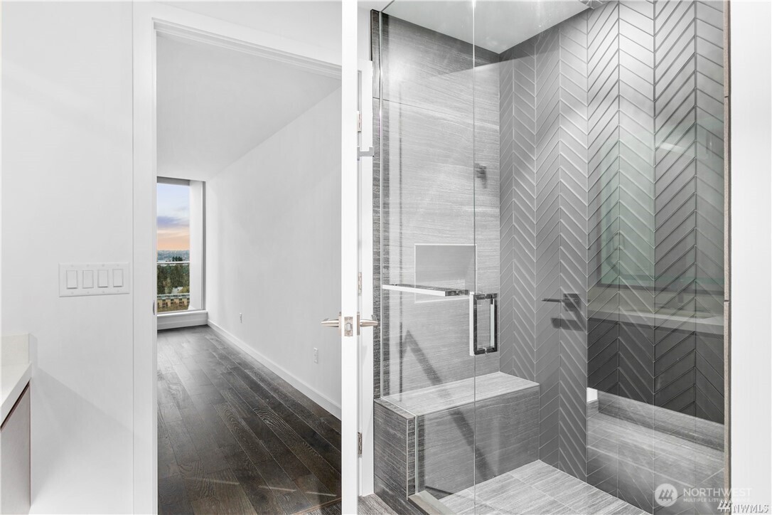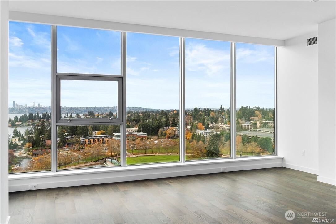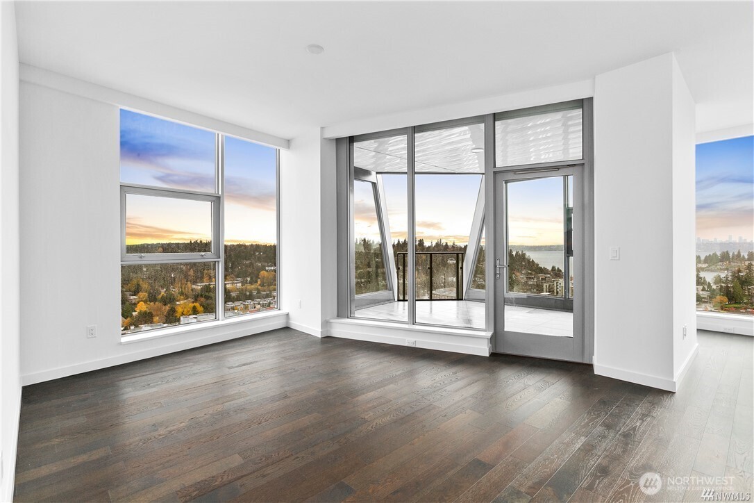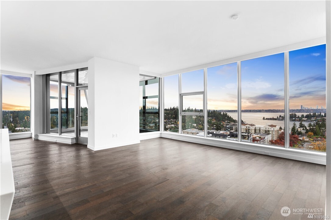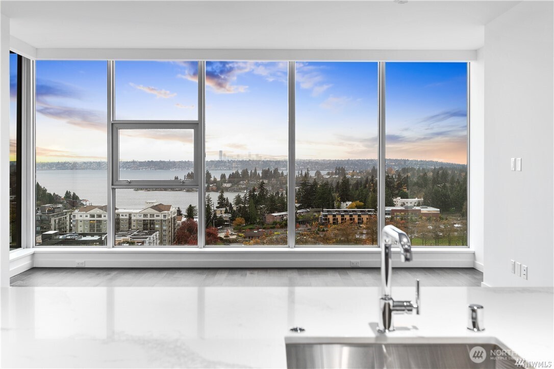 Enjoy the best of the Bellevue lifestyle at this beautiful SW corner 3-Bedroom home with two large terraces designed for modern living and entertainment. Spacious, with Wide-plank hardwood floors and floor-to-ceiling windows that frame Lake Washington and the Seattle skyline. An expansive island centers the chef's kitchen that features Gaggenau appliances and waterfall counters. The spacious owner's suite presents a large walk-in closet and sleek herringbone porcelain tile shower. Private garage with exclusive gate for two cars. World-class amenities include 24-7 concierge, garden terraces, fitness + spin studio, pool, steam room, virtual golf, party room, all a block from The Bellevue Collection and Main Street's shops and restaurants.