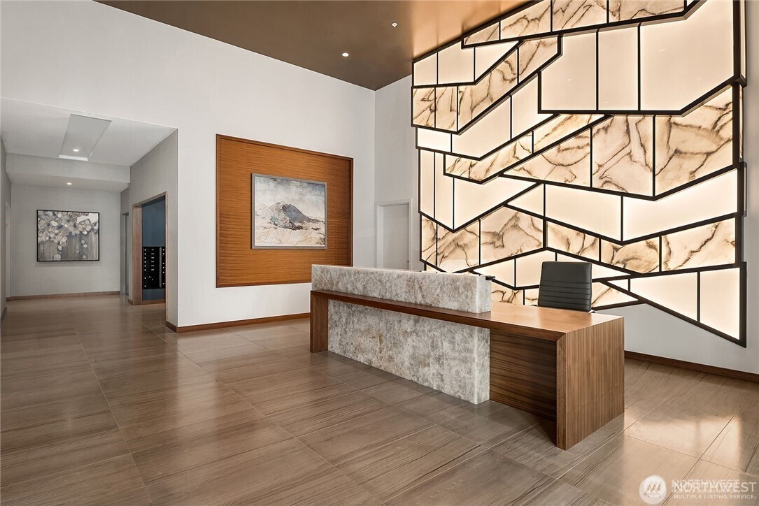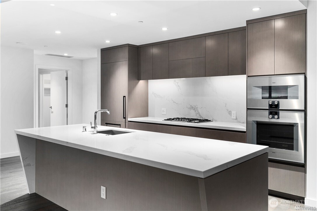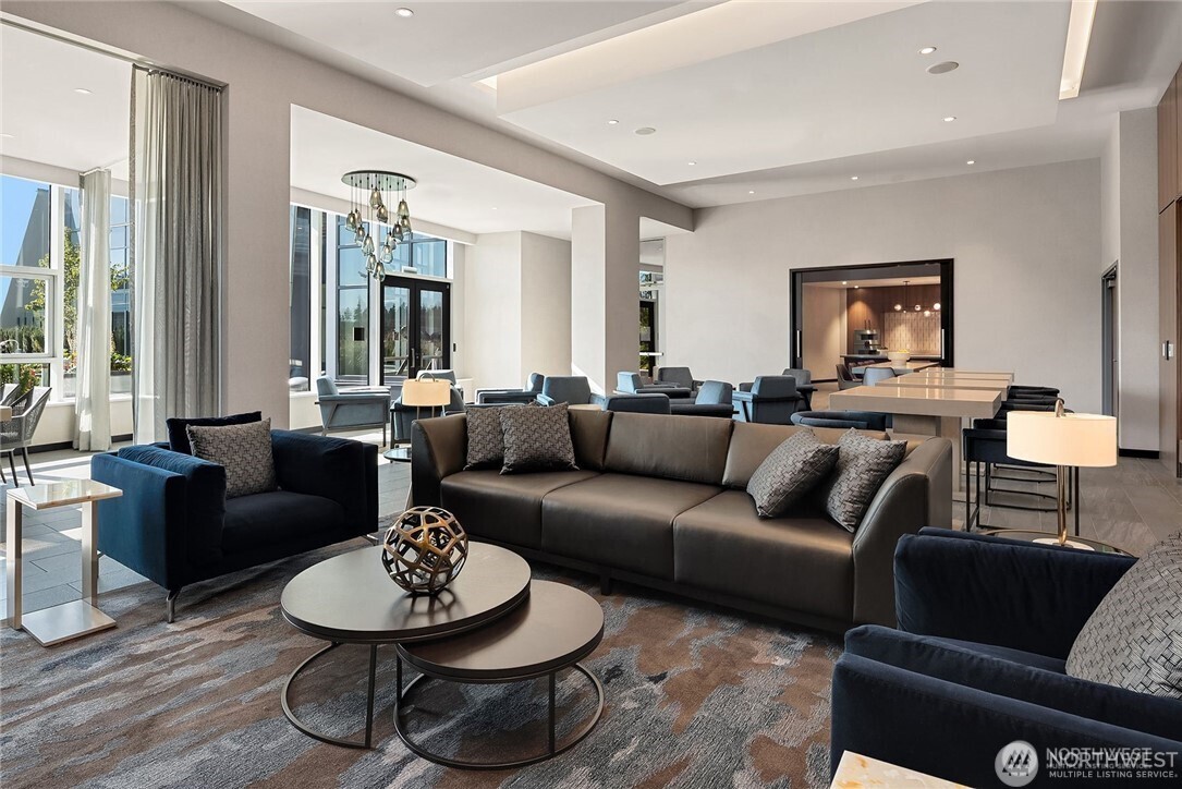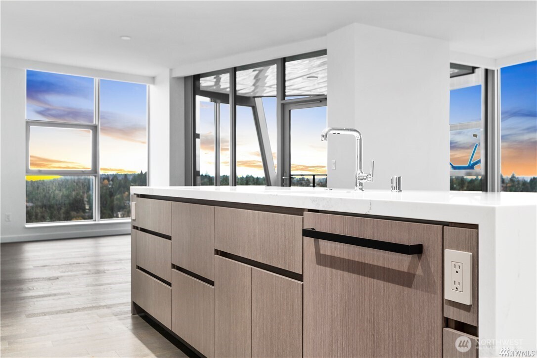 Floor-to-ceiling windows in every room frame Lake Washington and the Seattle skyline above sparkling Bellevue's vibrant downtown at this beautiful SW corner 3-Bedroom home with two large terraces designed for modern living and entertainment. Spacious, with Wide-plank hardwood floors and an expansive island centering the chef's kitchen. Gaggenau appliances and waterfall counters. The spacious owner's suite presents a large walk-in closet and sleek herringbone porcelain tile shower. Private garage with exclusive gate for two cars. World-class amenities include 24-7 concierge, garden terraces, fitness + spin studio, pool, steam room, virtual golf, party room, all a block from The Bellevue Collection and Main Street's shops and restaurants.