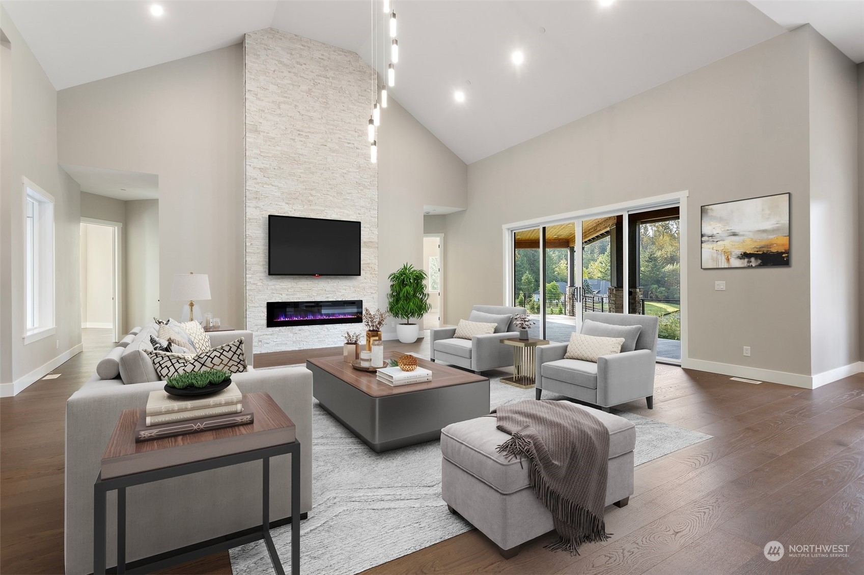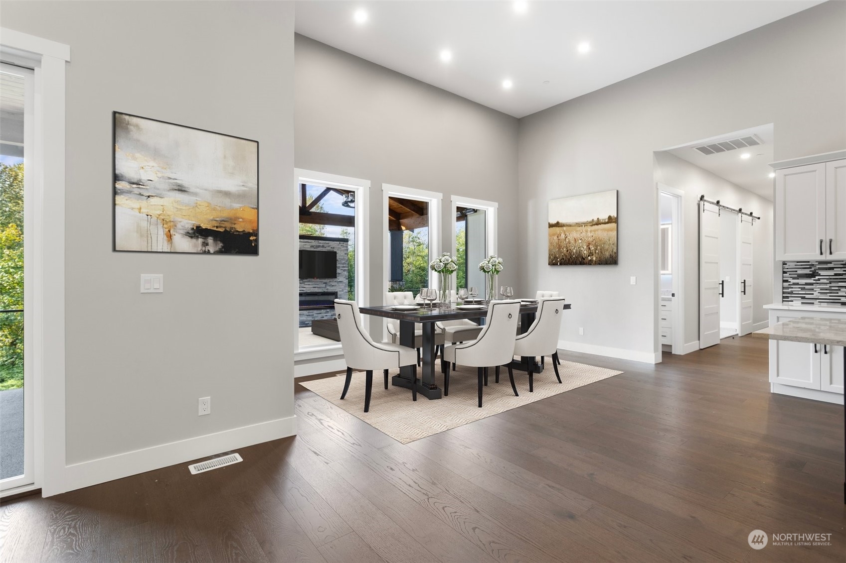 Discover an exquisite luxury retreat in this remarkable private home, boasting an impressive 5,947 square feet of meticulously crafted living space. This rambler style home features four spacious bedrooms, each with walk-in closets, and four elegantly appointed bathrooms, ensuring comfort and privacy for all. The residence showcases high-end finishes and soaring ceilings that elevate the ambiance throughout. With a substantial 2,326 square foot garage equipped with oversized doors and a 1,160 square foot woodshop, this property is perfect for those who appreciate ample space for toys such as RVs and boats or even room for farm animals--without the constraints of HOAs. Nestled in a serene setting yet conveniently close to local amenities.