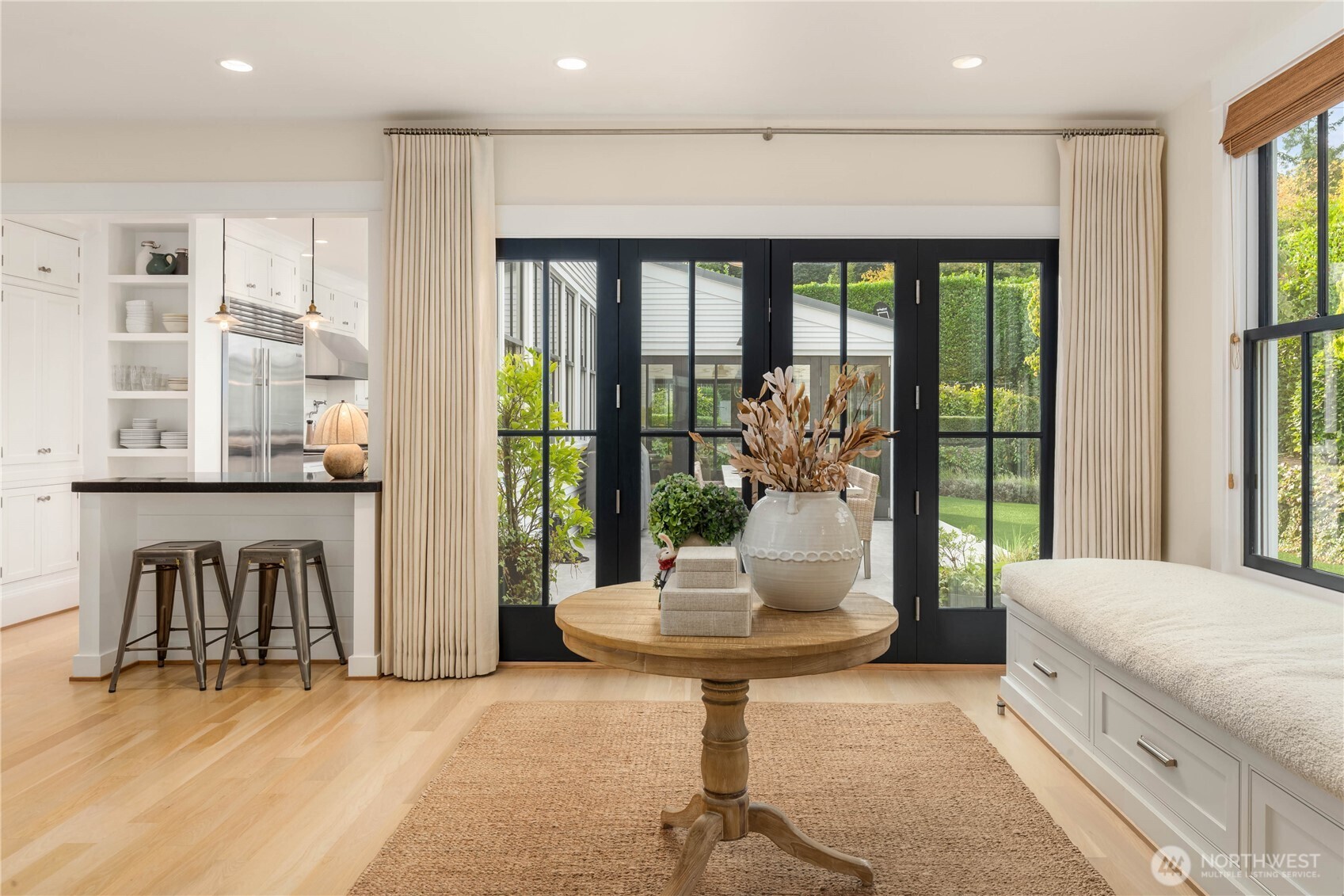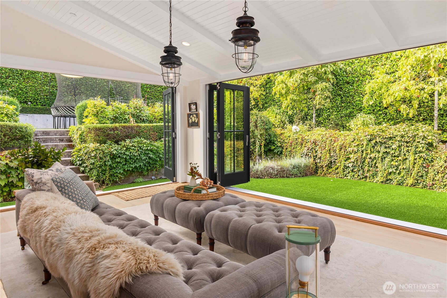 Presenting The Evergreen Estate- A distinguished property merging high-quality interiors with lush gardens through demising walls of glass, creating a canvas for year-round living and entertaining. The Custom floorplan frames the kitchen as a central hub for daily life and grand entertainment. Original, handcrafted glass pendants, sculptural chandeliers, and custom-fabricated metal fixtures infuse each room with a distinct artistic identity. Spaces are creatively demised with transitions of custom porcelain tiles to French Oak, visually refreshing the senses. Outdoors, a culinary and entertainment hub springs alive with custom lighting where artful landscape plantings as art. A private, serene residence. Pool permits convey with home.
