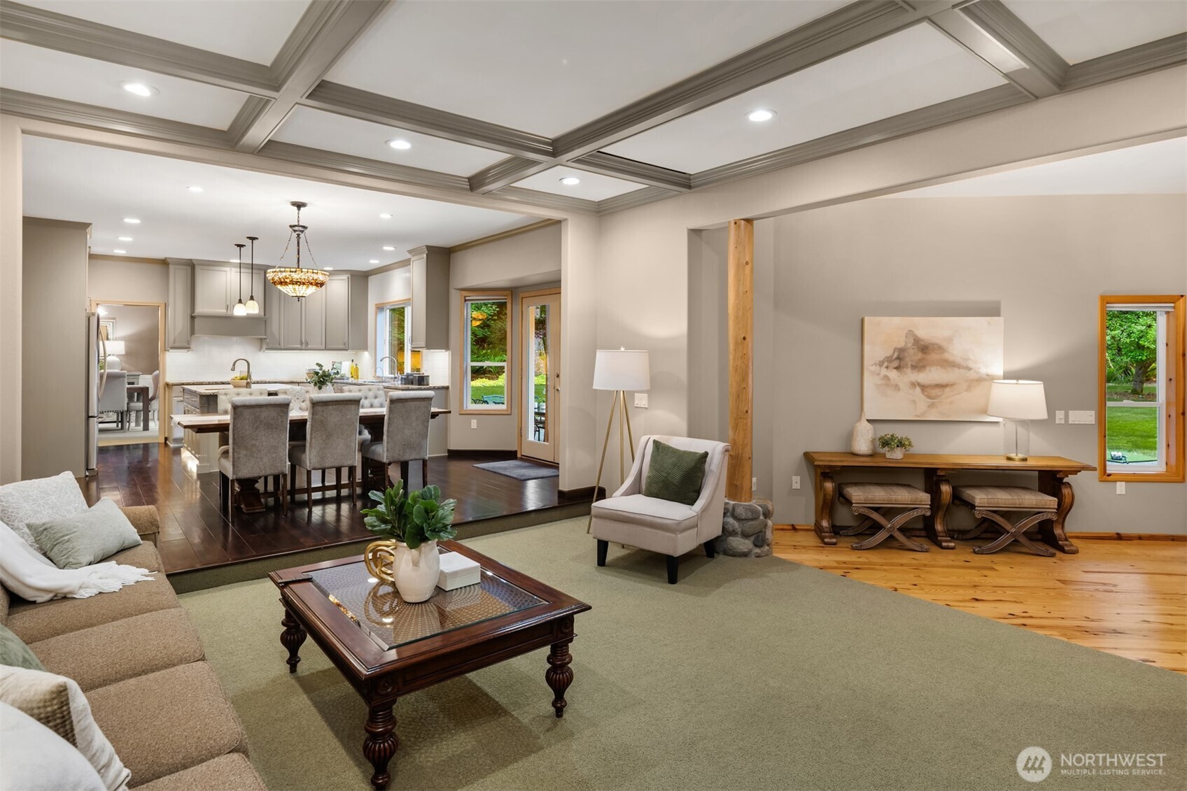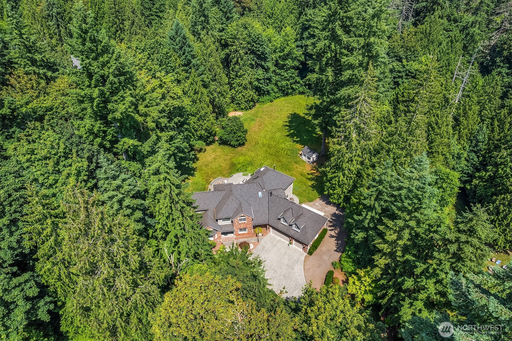 Dramatically poised down a long wooded drive in esteemed Sutton Place, this stately 2-story blends timeless elegance & PNW grandeur with the comforts of a forever home. Luxury living on an colossal scale with 4,562sf sprawled out on a secluded, sun-drenched 1.4 acre estate surrounded by evergreens & state forest. Opulent architecture with spacious rooms & exquisite curated finishes. Soaring marble foyer with cascading spindle staircase & stunning chandelier opens to office with built-ins, vaulted living room with marble fireplace & formal dining with tray ceilings, wainscoting & bay window. Extravagant chef's kitchen with high-end appliances, island bar & full-size eating space opens to family room with coffered ceiling, 2nd staircase, den/study & sunken parlor with towering floor-to-ceiling river rock fireplace framed by built-in bookcases. Regal primary suite with cathedral ceilings & lavish new 5-piece designer bath. Tucked away loft bonus room with skylights & dormers. Private backyard oasis with extended patio, custom lighting, fire pit & massive level lawn. 3-car dream garage with 4-post hydraulic lift. Moments from world-class Woodinville amenities & top-tier Northshore Schools. 1st time on market!