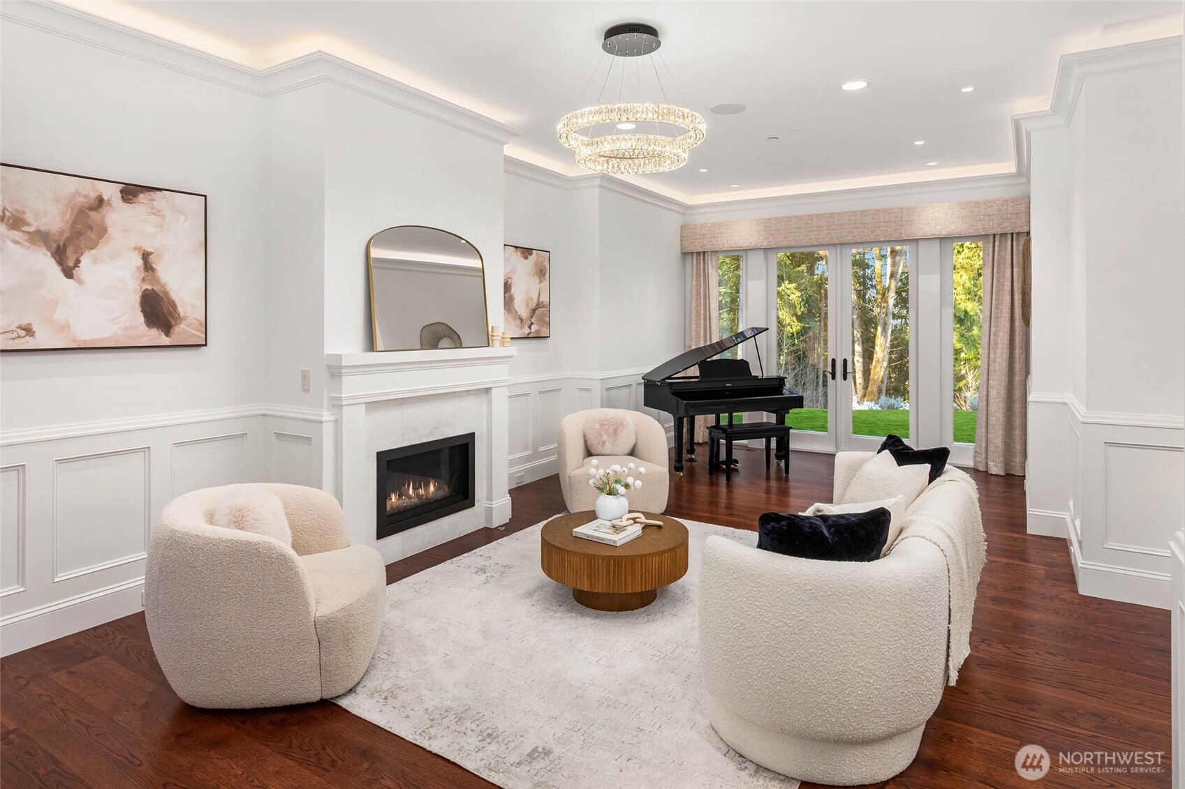 Behind private gates on Grand Ridge, one of Issaquah's most loved neighborhoods, a remarkable estate designed by Gelotte Hommas. A rare blend of timeless architecture, refined interiors, and serene privacy with thoughtful design and a balance of elegance and comfort. Filled with natural light, soaring ceilings, rich hardwoods, and beautifully crafted millwork that create a warm, elevated atmosphere throughout. At the heart of the home, expansive living and entertaining spaces flow around a chef's kitchen featuring custom cabinetry, premium appliances, and generous island seating, perfect for both everyday living and elevated gatherings. Large windows and seamless indoor-outdoor connections extend the living experience to manicured grounds, covered patios, and tranquil natural surroundings, creating a true sense of retreat. The primary suite is a private sanctuary with a fireplace, spa-inspired bath, generous closets and peaceful views of the lush setting beyond. 8 car garage, 12-seat theater room, Luscious wine cellar (1600 bottles!), game room, guests suites, gym and Jacuzzi. Fully fenced and Ideally located near Grand Ridge trails, parks, restaurants, and Issaquah amenities, 20 minutes from Bellevue and beyond. An exceptional residence blending privacy, sophistication, and lifestyle in a truly rare offering.