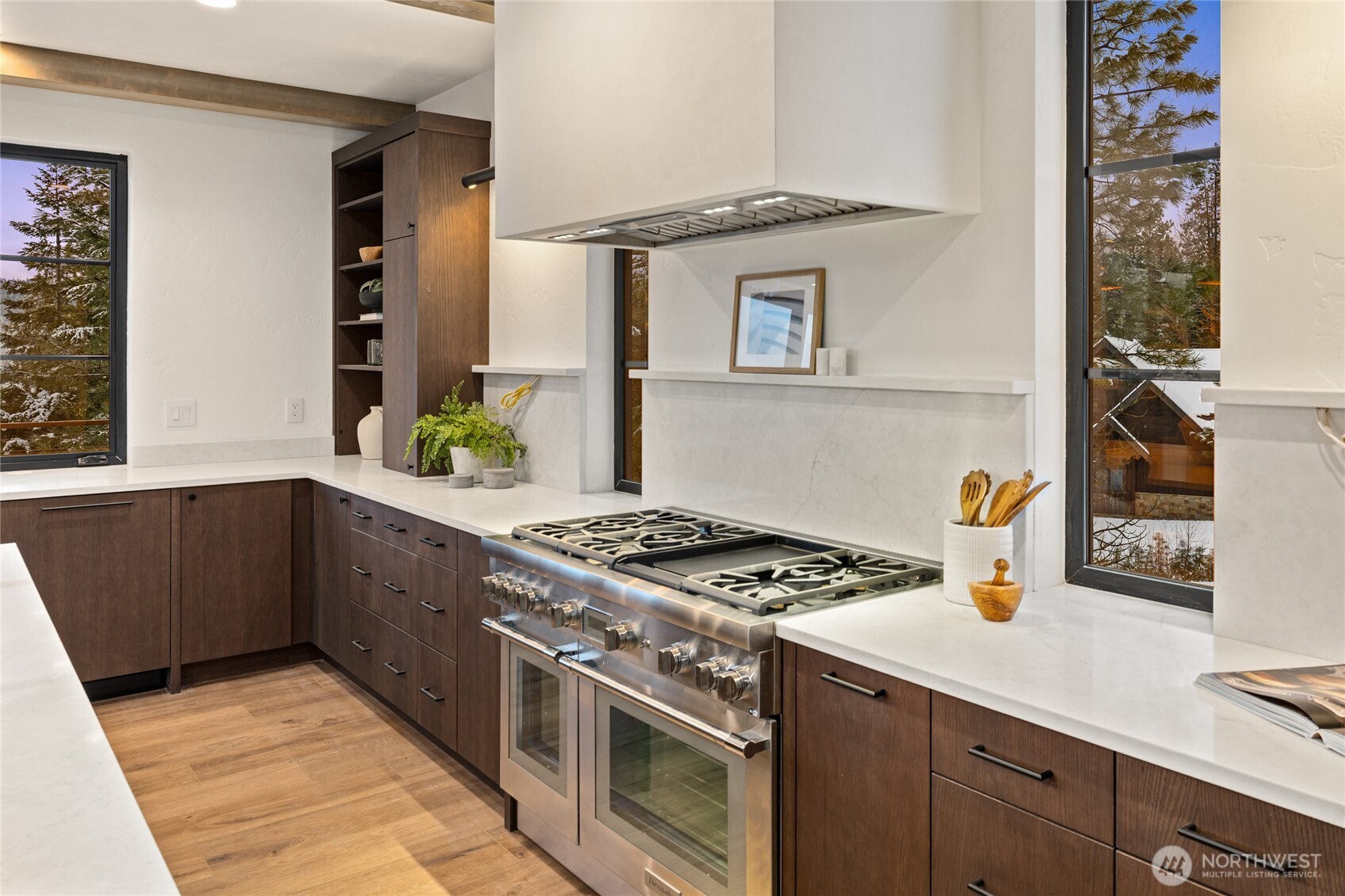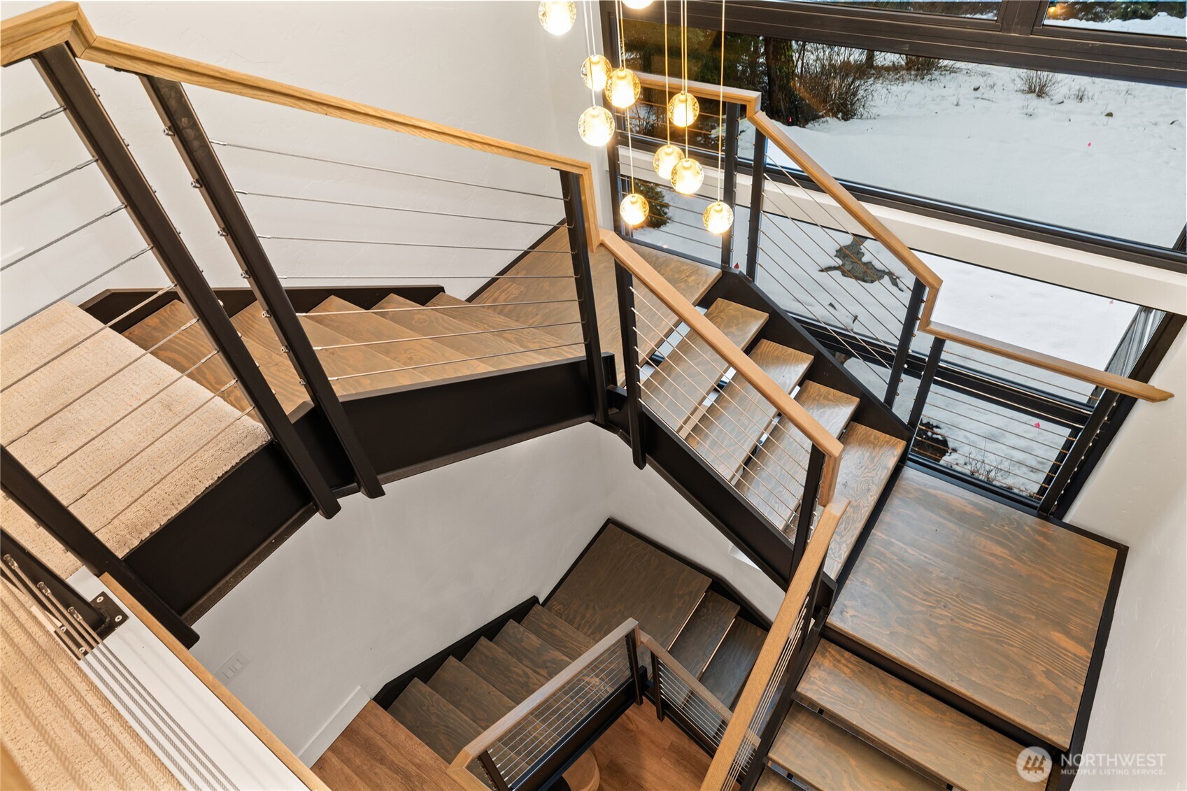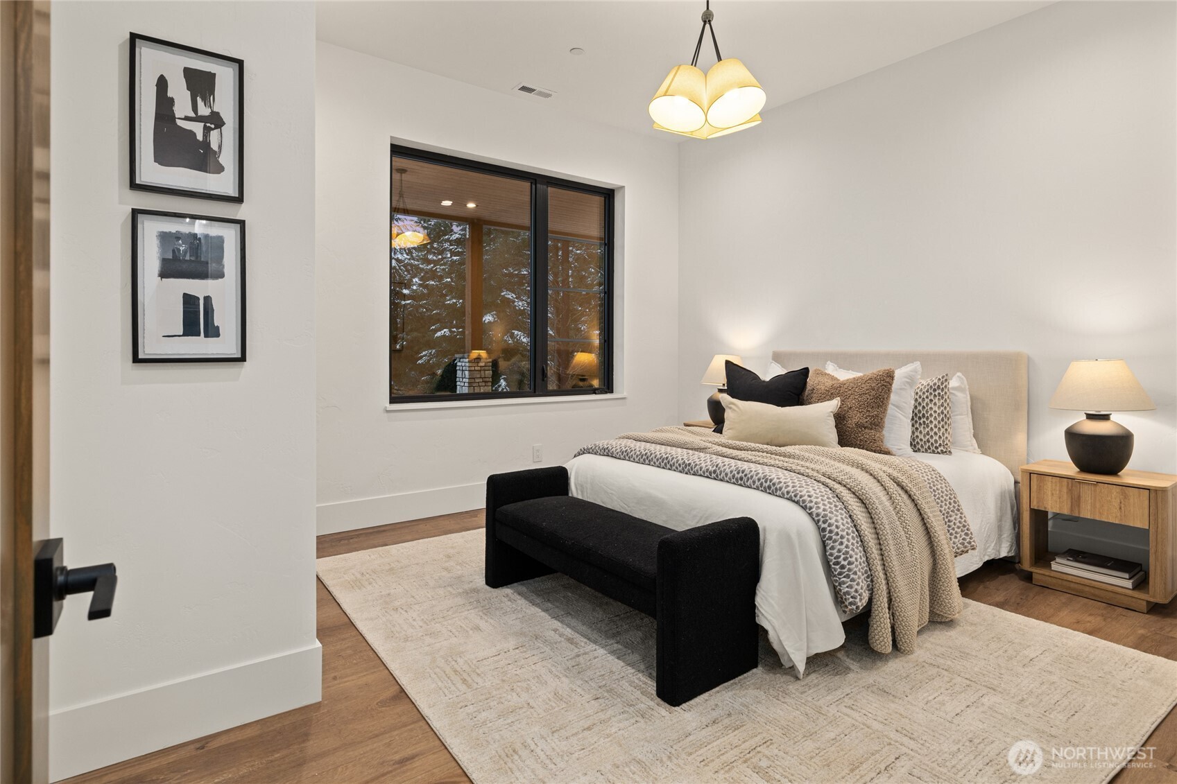 Situated on one of the best view sites in Suncadia, this stunning new modern mountain home by Benchmark Custom Homes offers panoramic views in the gated River Ridge neighborhood. This 5-bedroom + den home includes a separate lower-level living room, high-end kitchen with walk-in pantry, main-level ensuite, upstairs primary & guest bedrooms, and a lower-level bonus with more bedrooms. Radiant heated floors in the basement and main living room. Enjoy custom tile, flooring, steel staircase & more. Entertain on the elevated deck or ground-level patio with direct trail access to the river or Nelson Farm Pool.