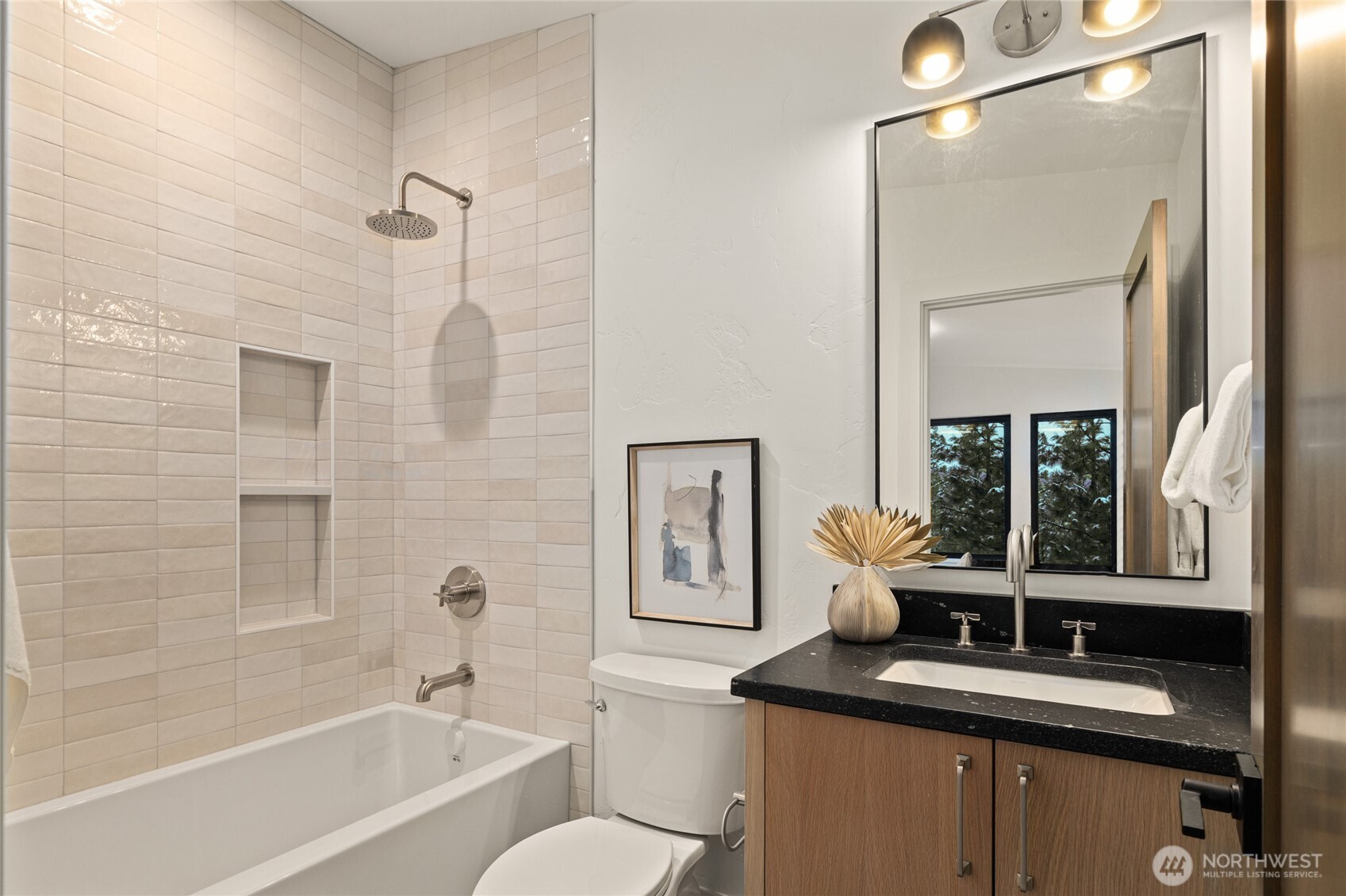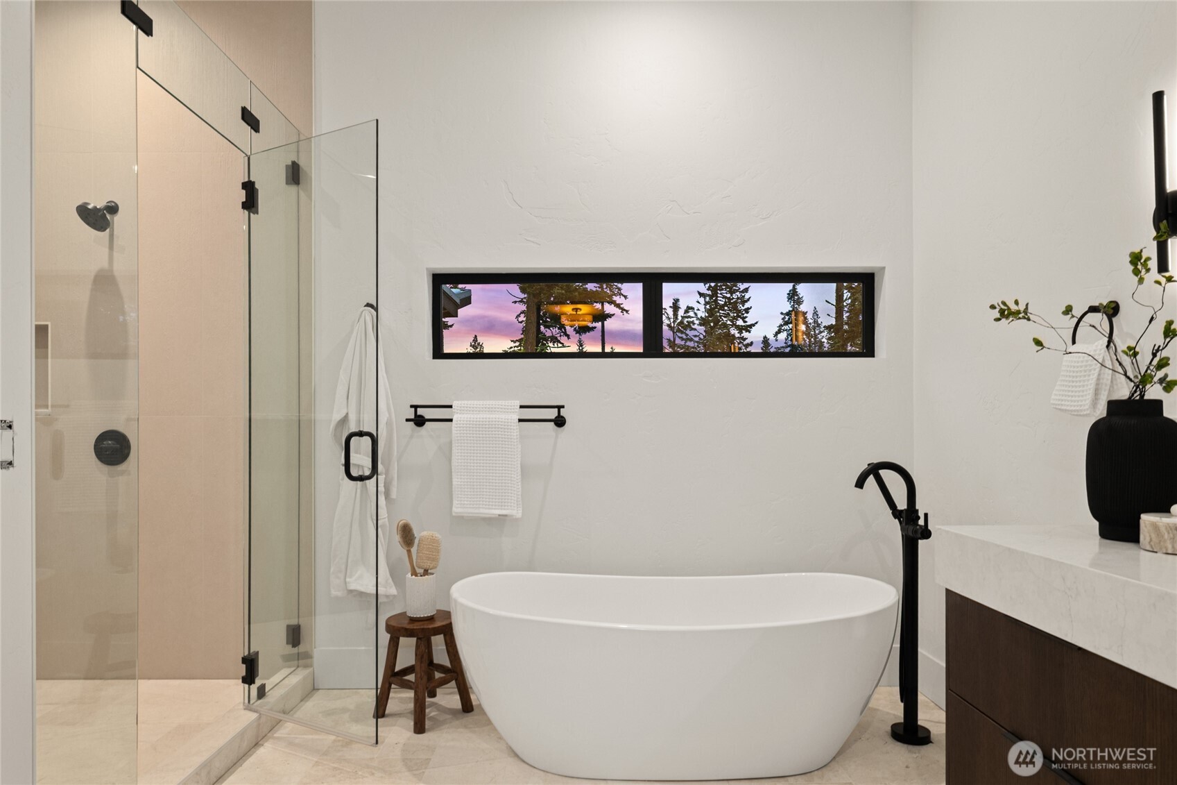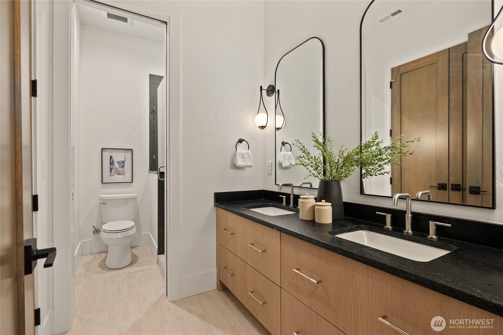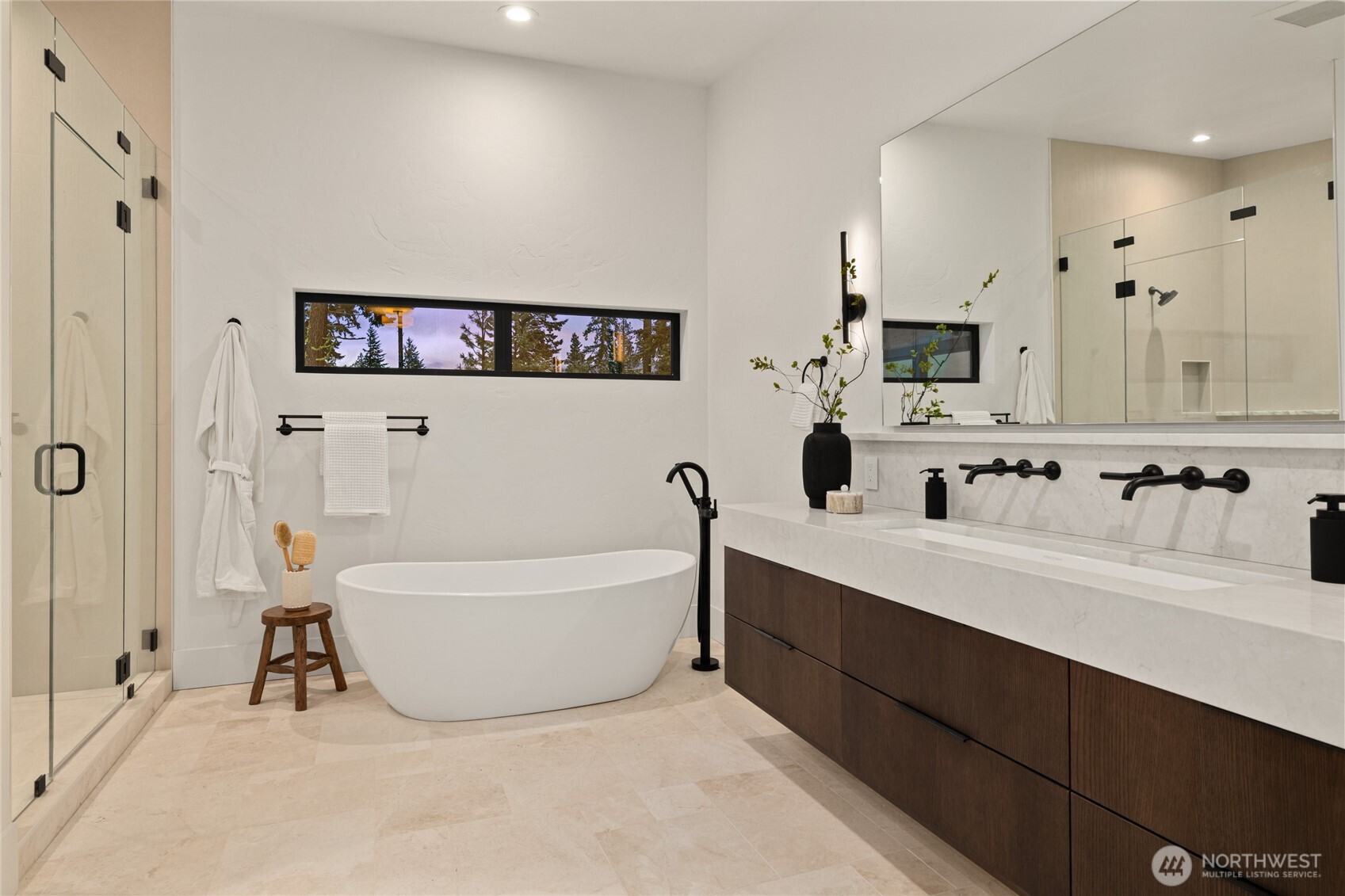 Situated on one of the best view sites in Suncadia, this stunning new modern mountain home by Benchmark Custom Homes offers panoramic views in the gated River Ridge neighborhood. This 5-bedroom + den home includes a separate lower-level living room, high-end kitchen with walk-in pantry, main-level ensuite, upstairs primary & guest bedrooms, and a lower-level bonus with more bedrooms. Radiant heated floors in the basement and main living room. Enjoy custom tile, flooring, steel staircase & more. Entertain on the elevated deck or ground-level patio with direct trail access to the river or Nelson Farm Pool.